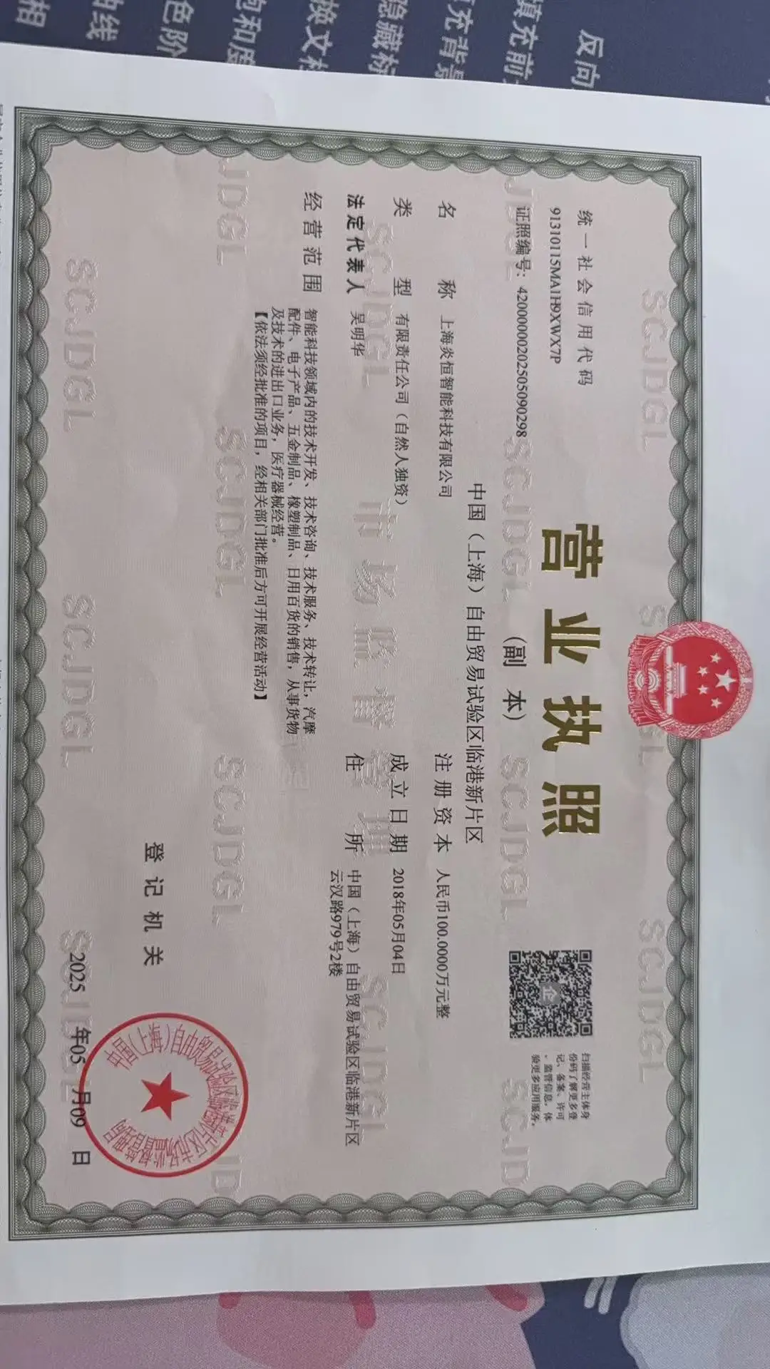 Registered address : 2nd Floor, No. 979 Yunhan Road, Lingang New Area Shanghai China